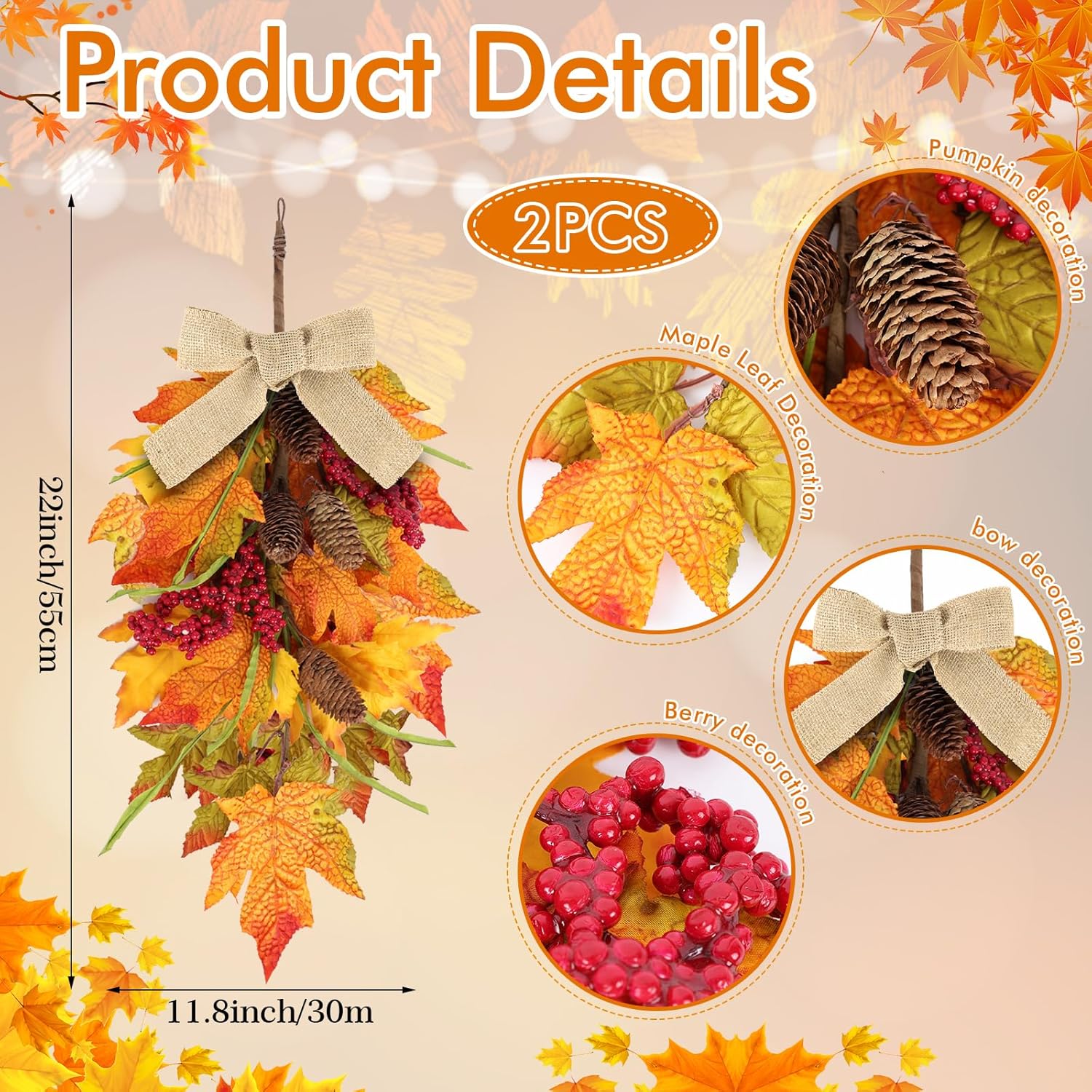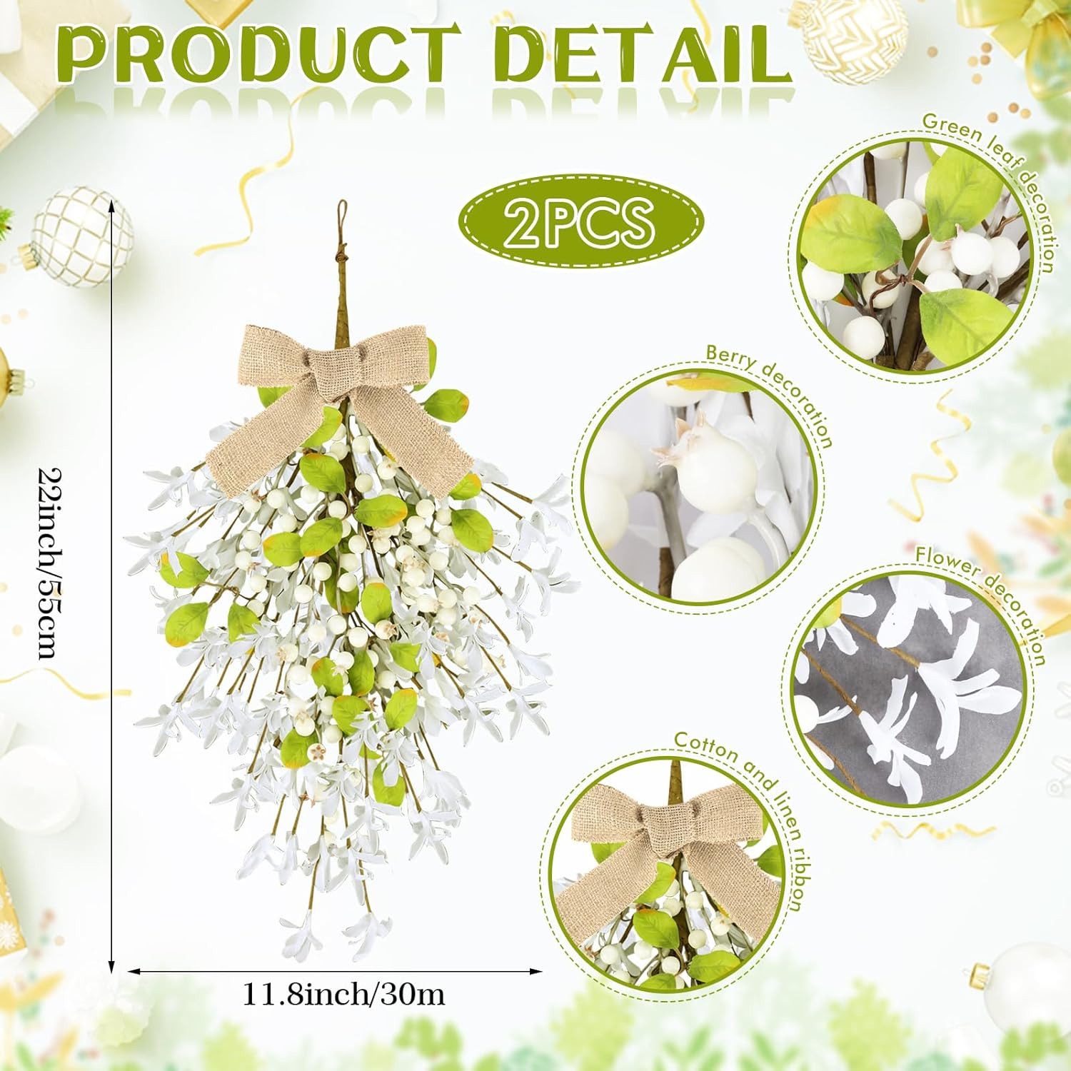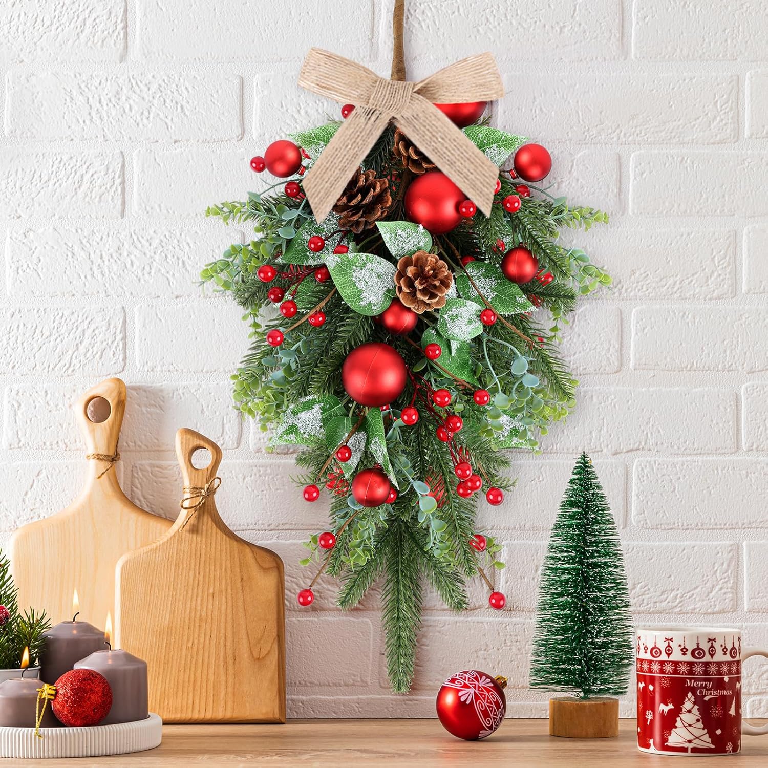 - Christmas wreath at the front door: You will receive 2 pieces of Christmas teardrop Swag with ribbons. The quantity is sufficient to meet your decoration needs and can also be shared with friends