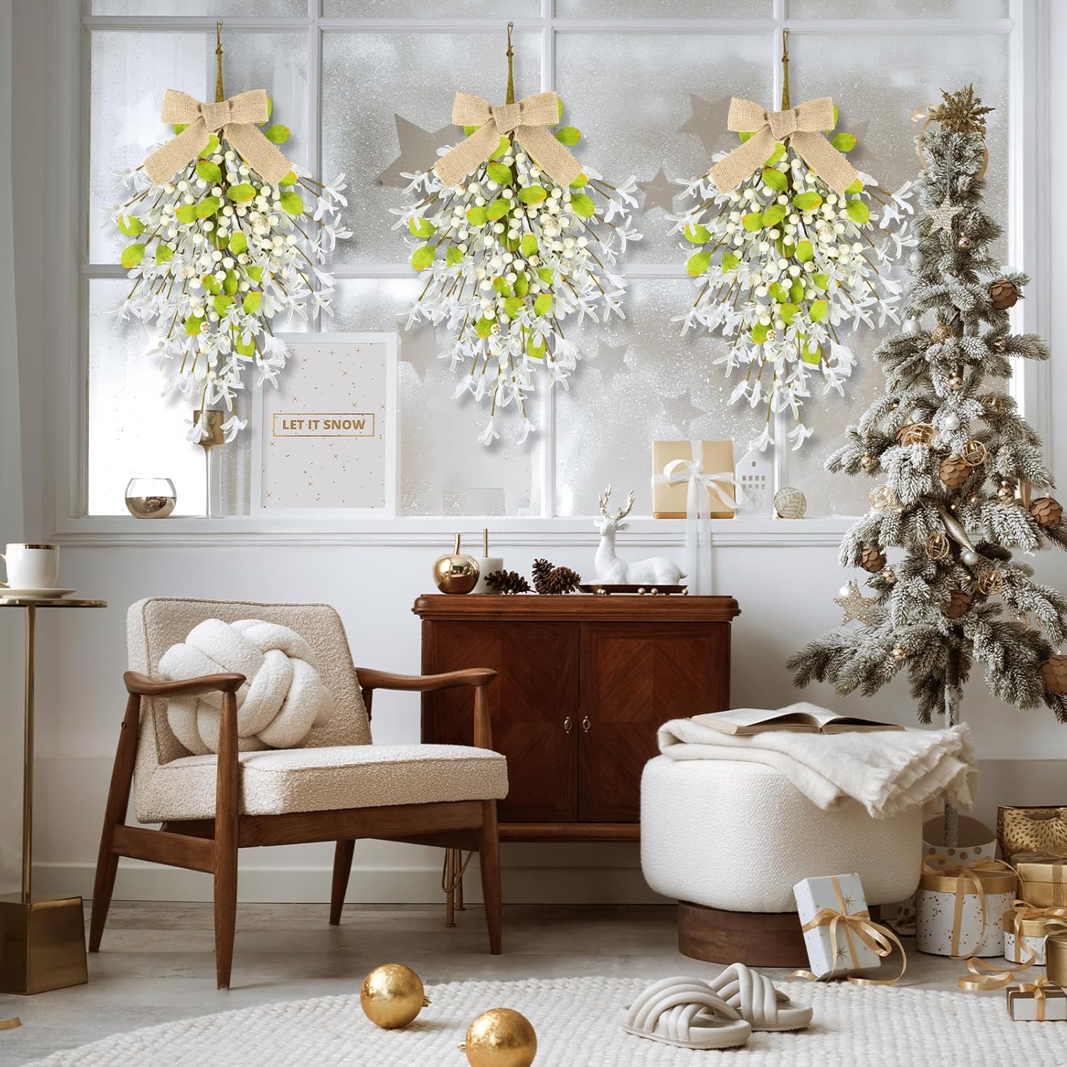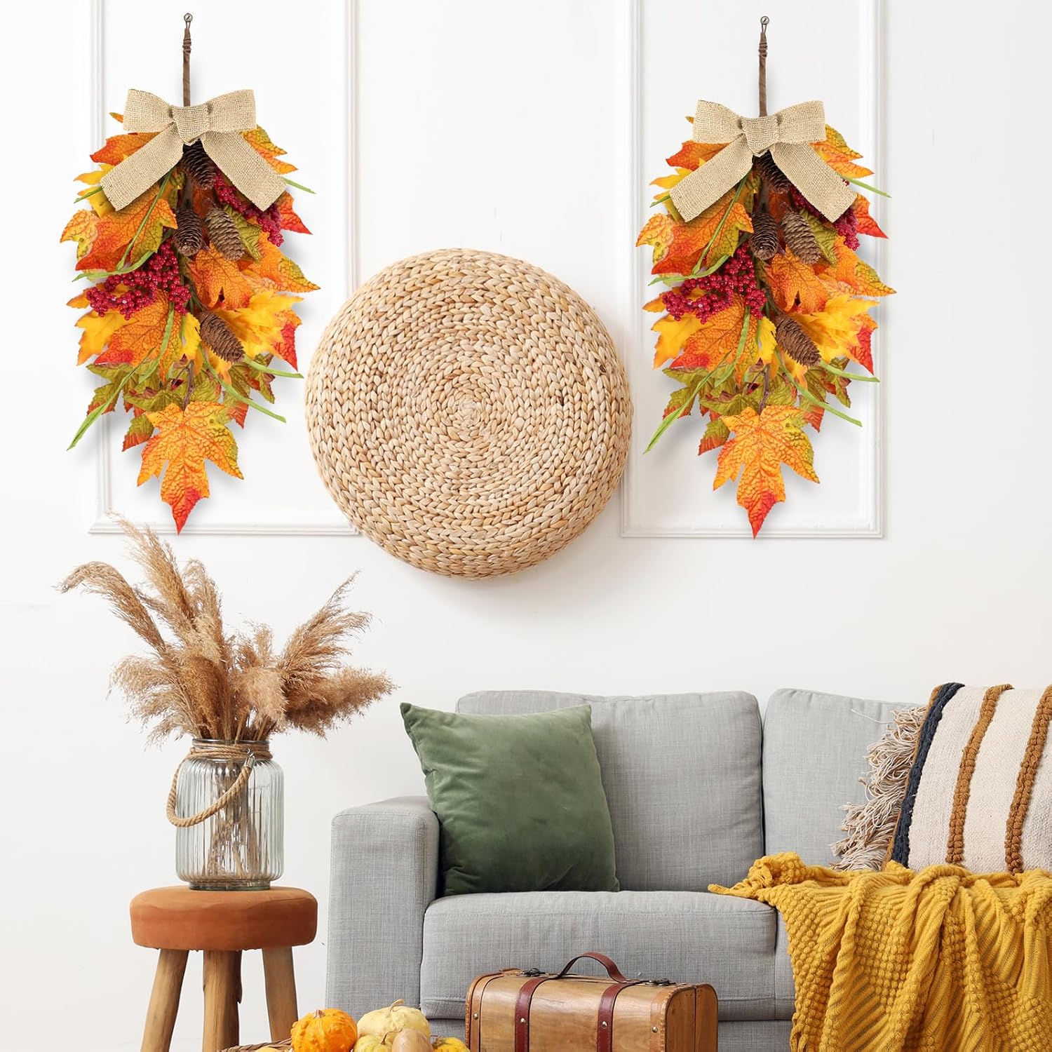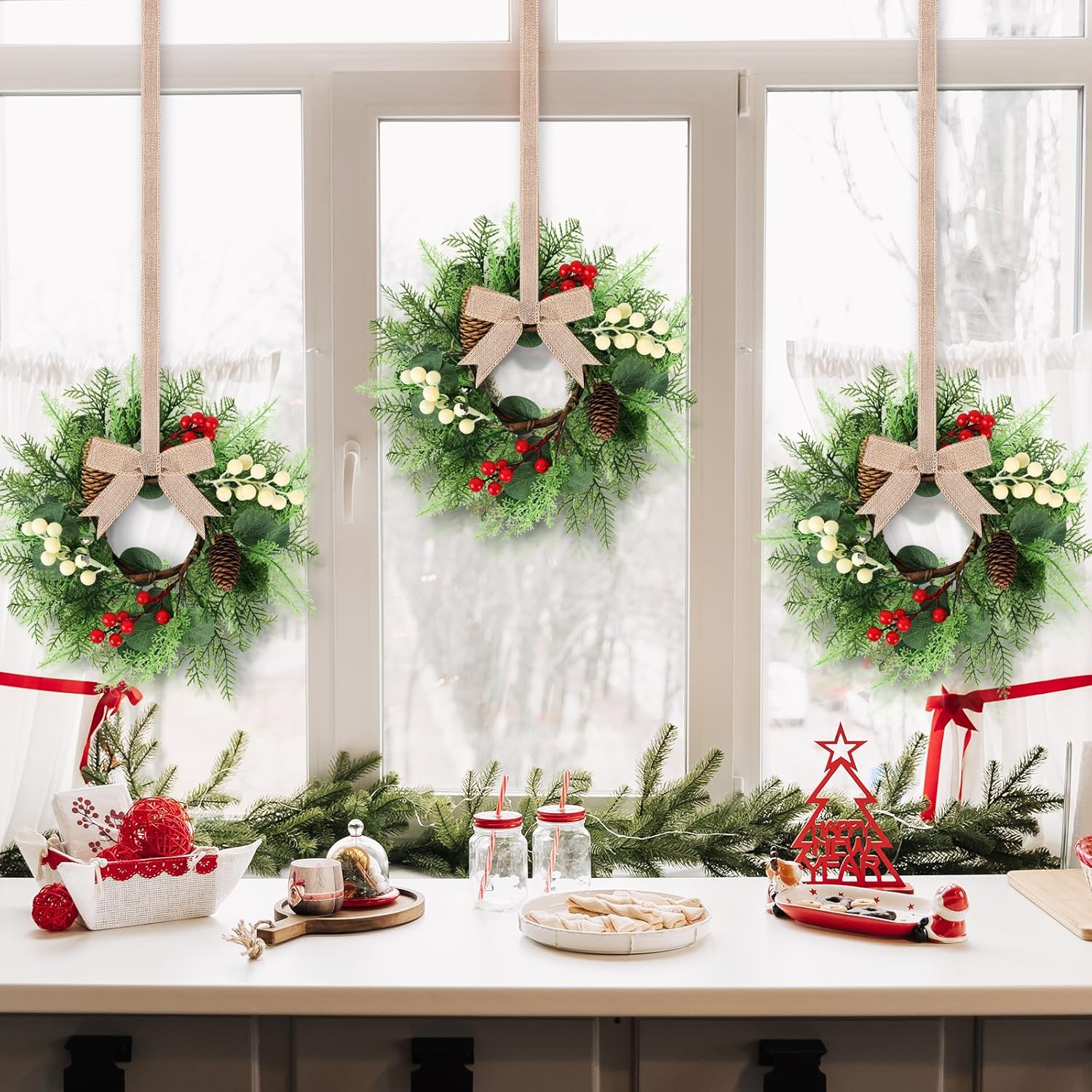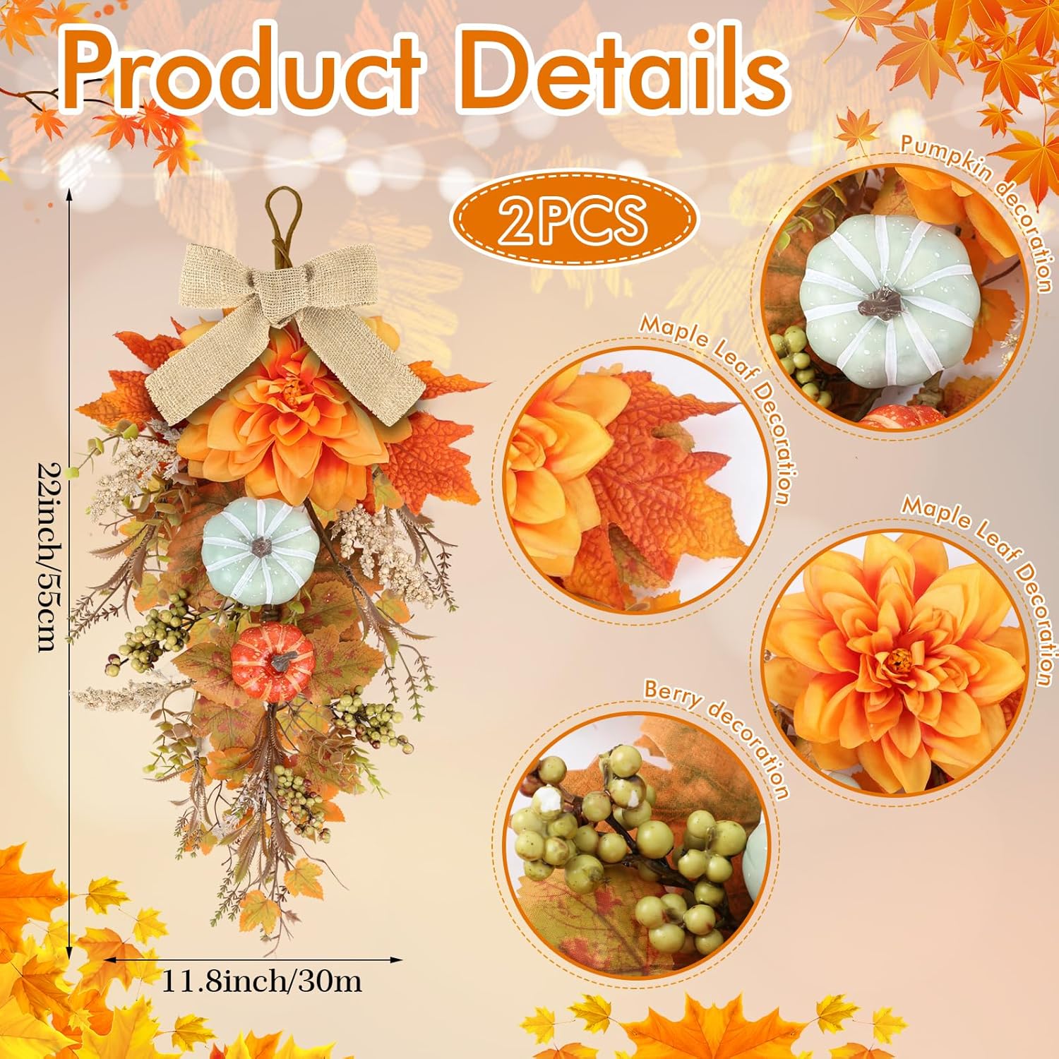 - Christmas wreath at the front door: You will receive 2 pieces of Christmas teardrop Swag with ribbons. The quantity is sufficient to meet your decoration needs and can also be shared with friends