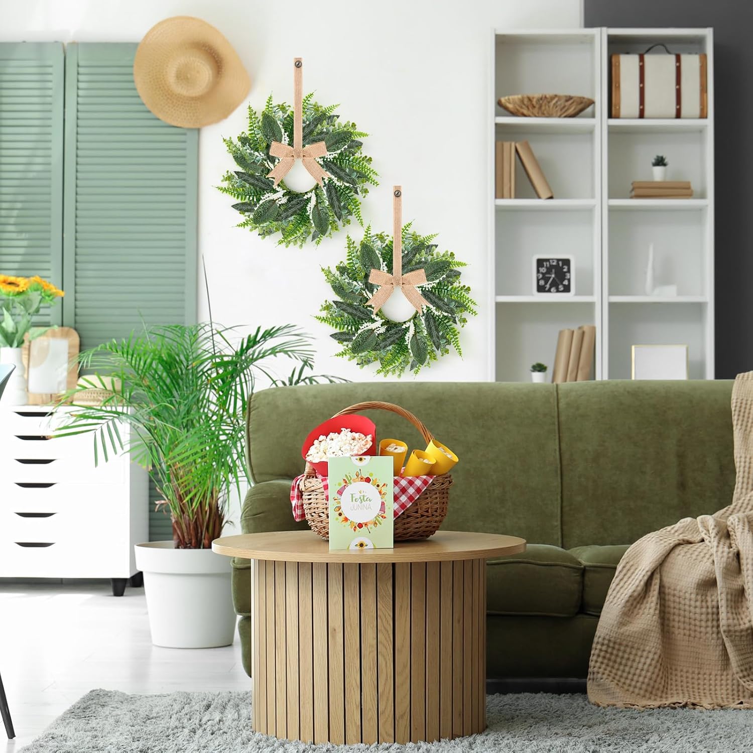 - Appropriate size: The Christmas swag at the front door is approximately 24 inches high. Its main rod contains metal wires and can be bent. You can easily unfold the shape to create a perfect appearance. Due to packaging requirements, when you receive the Christmas wreath, the wreath in the box is tightened and the branches need to be adjusted to restore its original shape