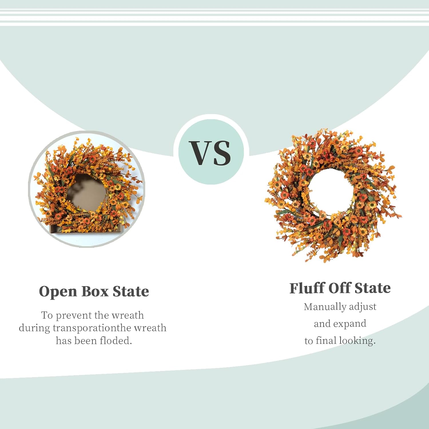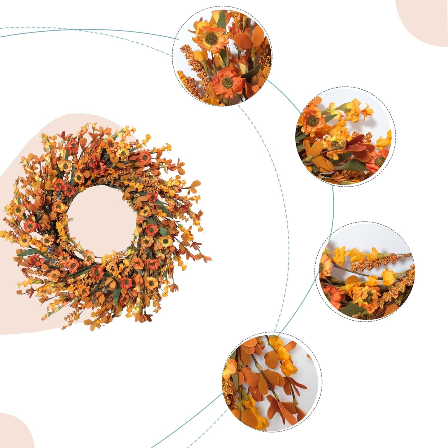 - 🌼4.【Suitable for】:This artificial wreath can be used for home, office, restaurant, front door, wall, window, garden, balcony, staircase and many other places.