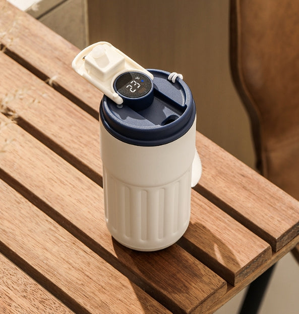 Introducing our portable coffee thermal mug with temperature display, a must-have for coffee fans who appreciate precision and convenience.
