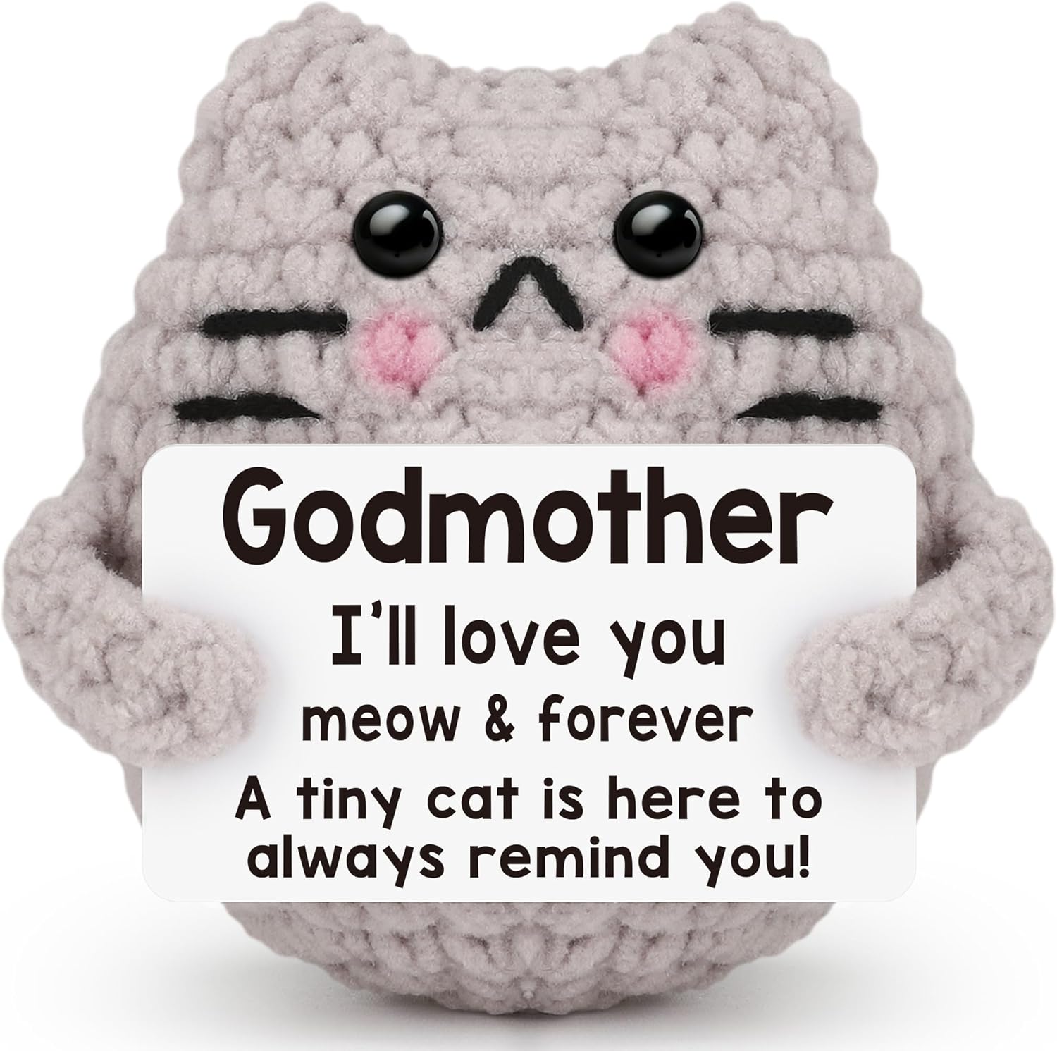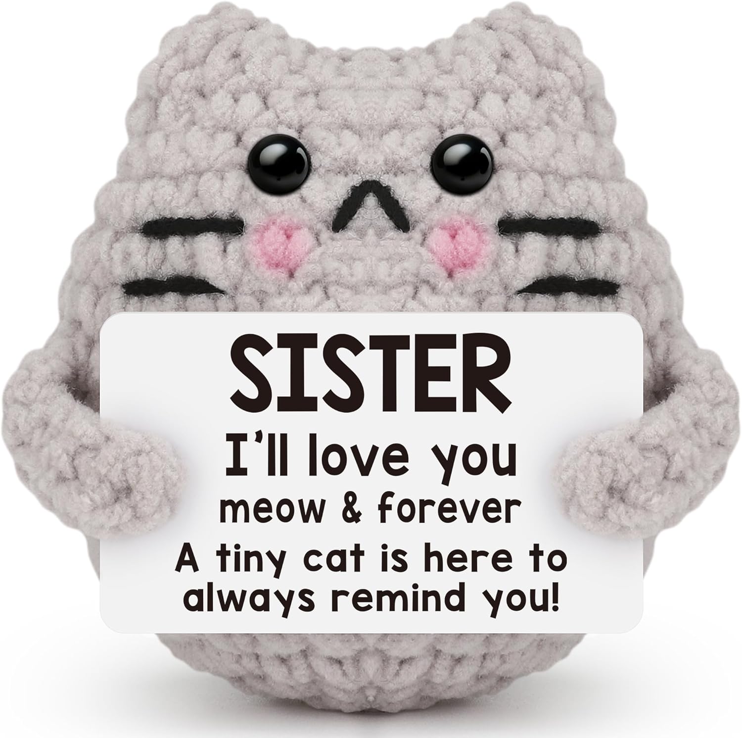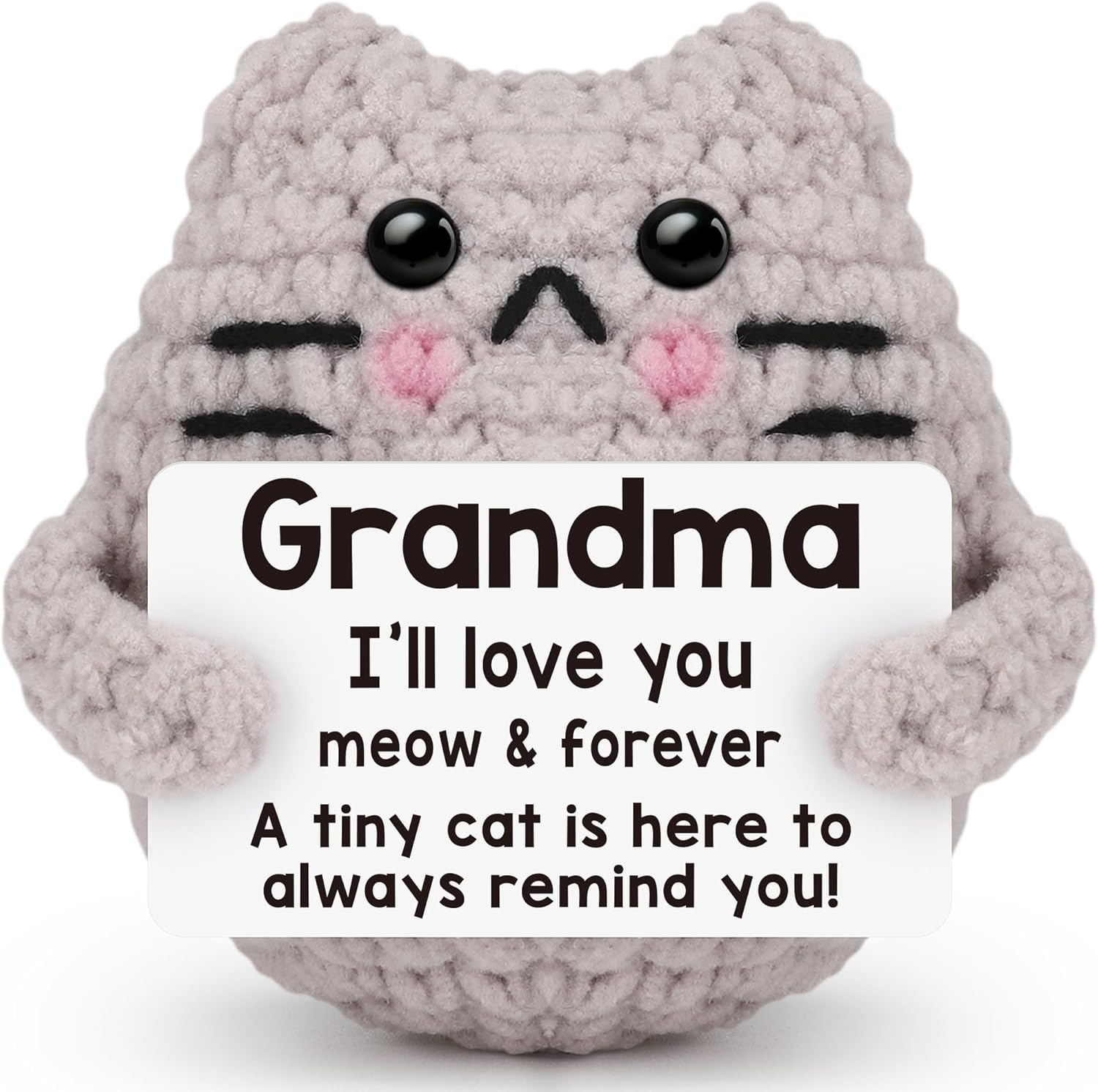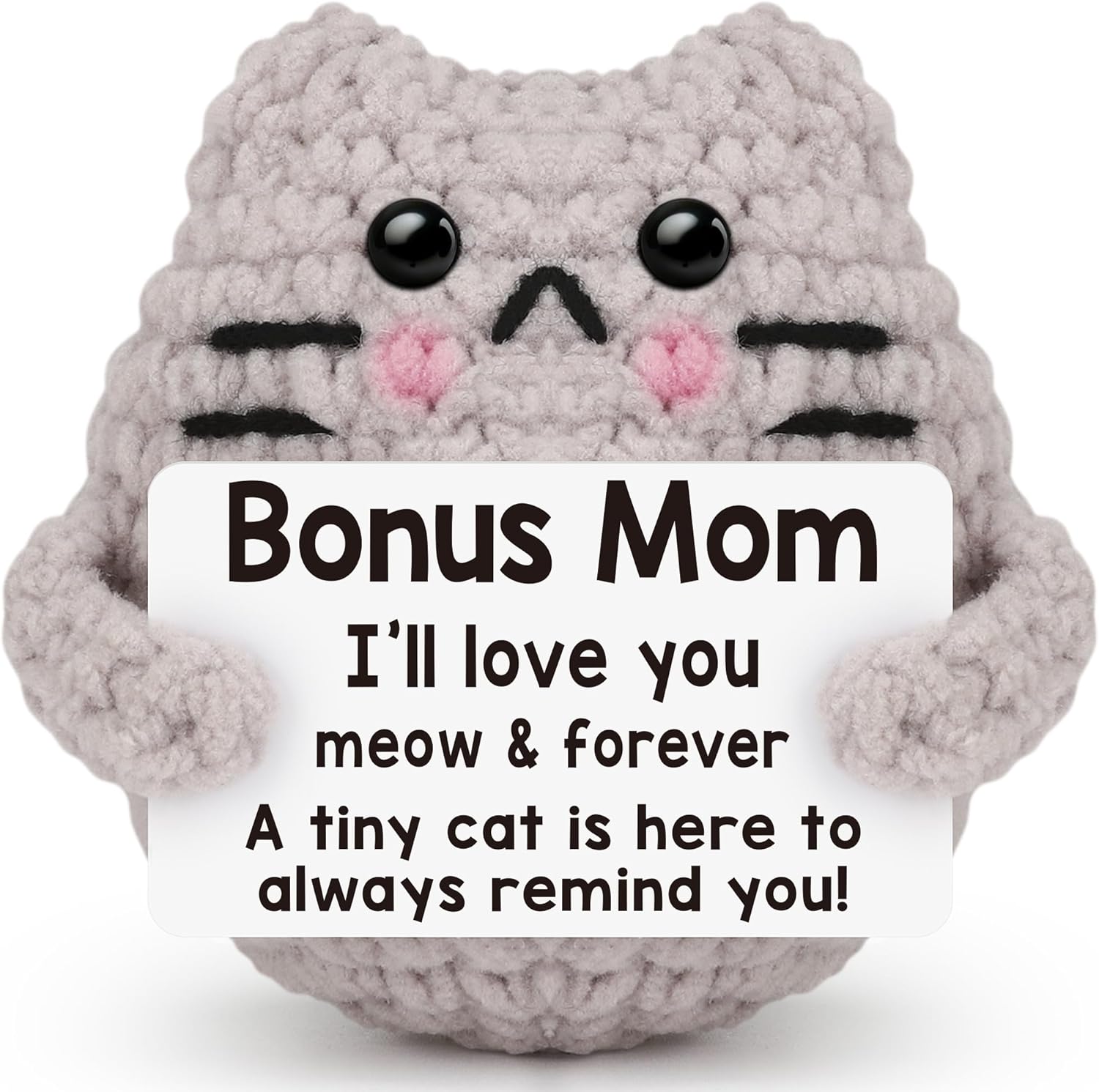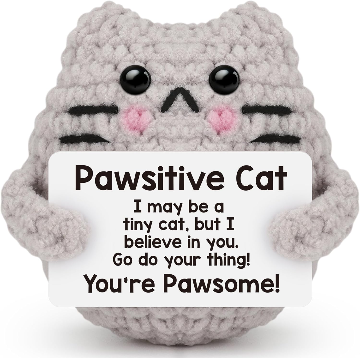 Crochet Cat Easter Basket Stuffers Positive Cat Crochet for Friend for Mom Grandma Dad Grandpa Daughter Son Gifts, Emotional Coworker Sister Brother Support Small Birthday Gifts