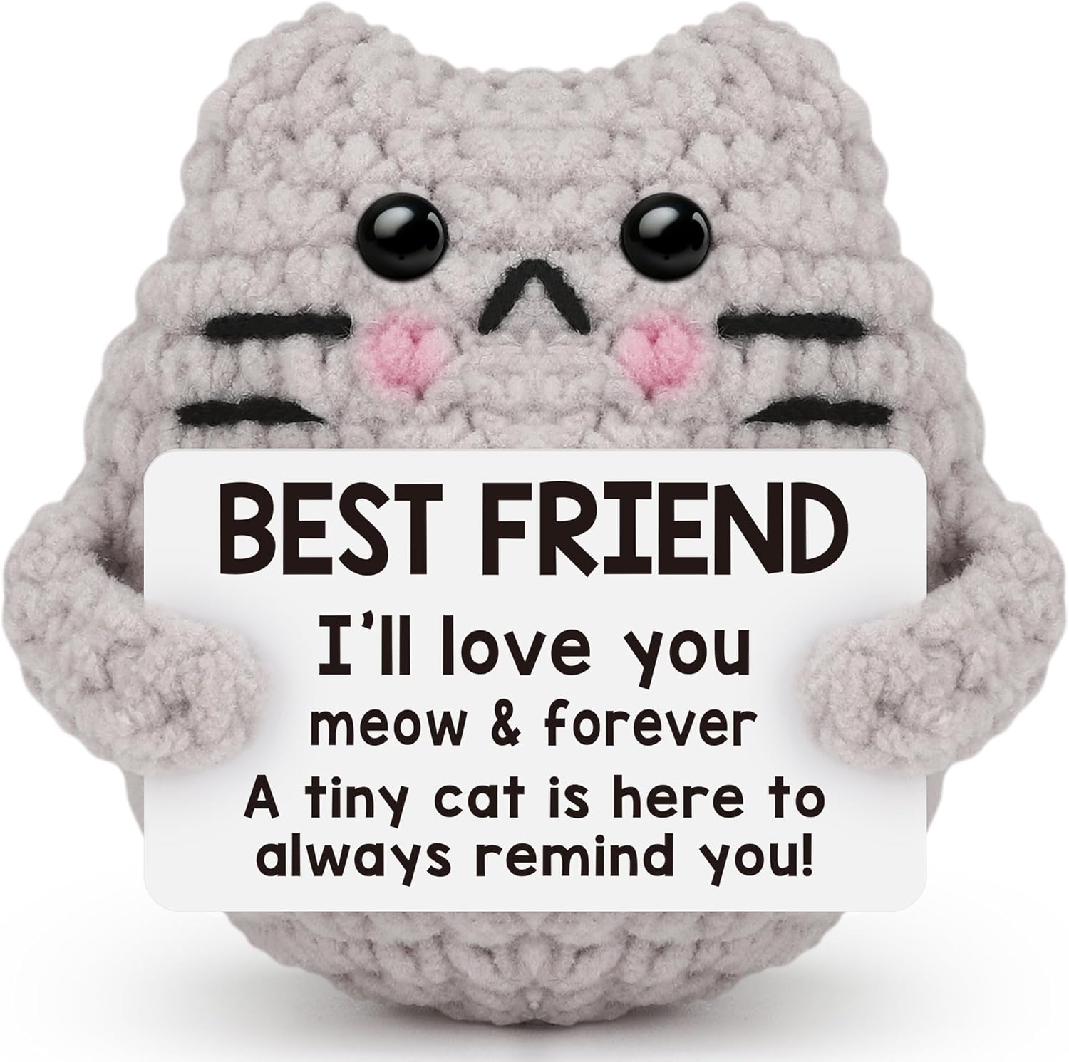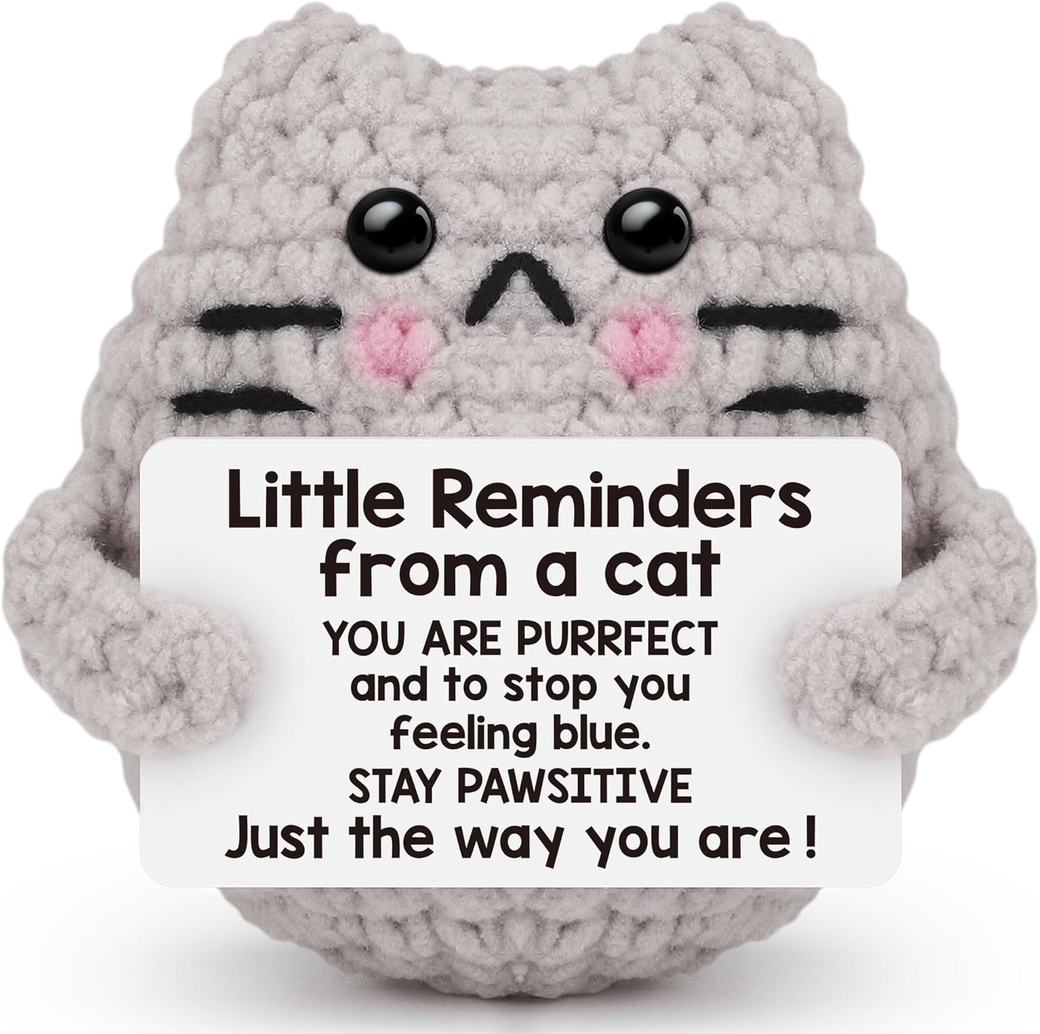 - 【High Quality Knitted Cat】:This crochet Cat is made with high-quality yarn, meticulously hand-stitched for an appealing look. The funny home decor gifts include heartwarming positive gift cards. Measuring approximately 2.8 x 2.5 inches, The soft and comfortable texture provides a delicate touch and excellent elasticity, ensuring that it retains its shape even under pressure.