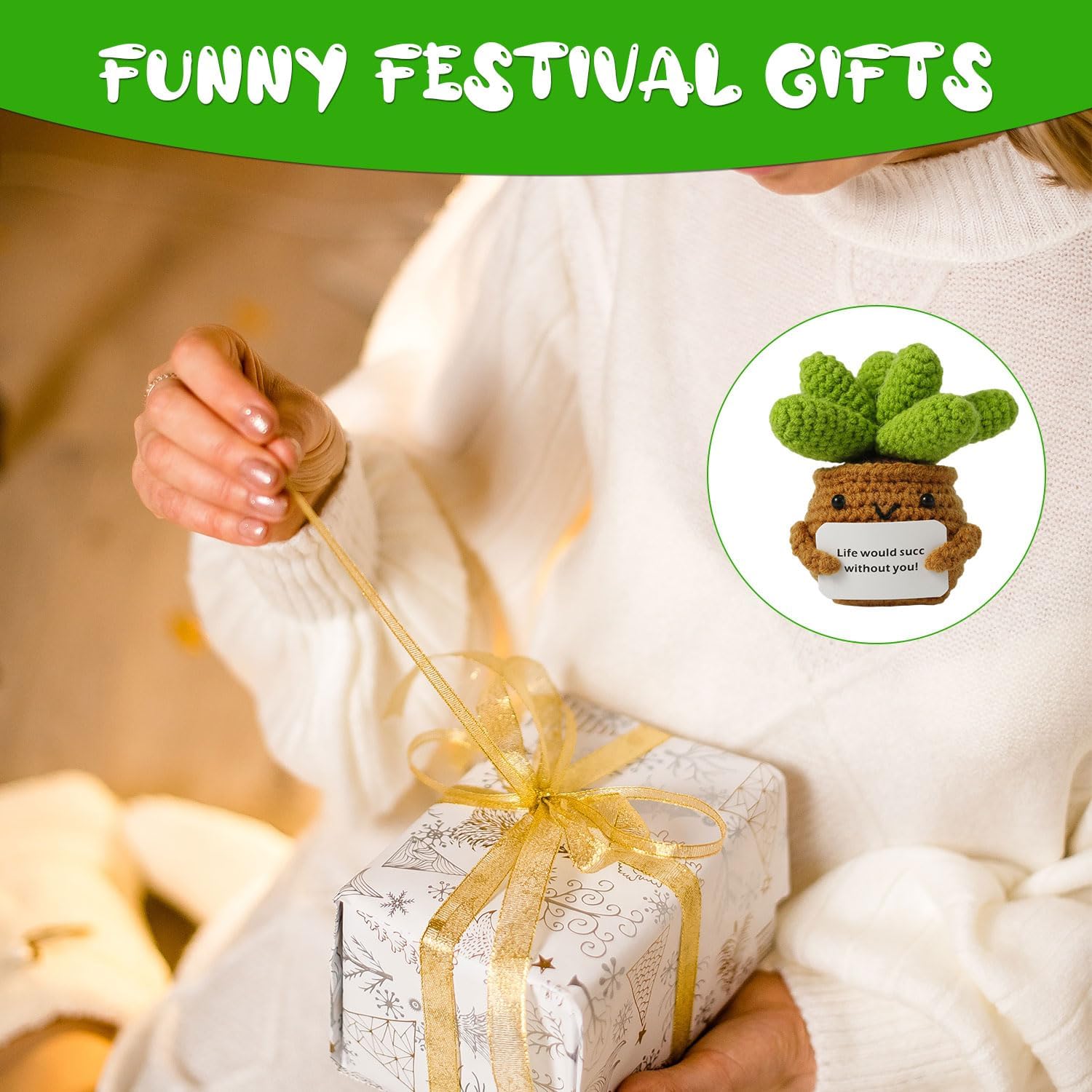 - Package Contents: You will receive 1 piece of funny crochet potted plants, with encouraging message card, you can give it to your families and friends, which bringing them encouragement and warmth.