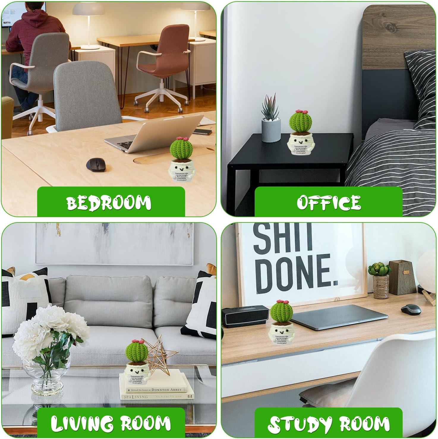 - Exquisite Design: Knitted potted plants has a cute novelty look and interesting design, the words of encouragement in their hands are so warm; whether you are happy or depressed, they will always accompany you and cheer you up.