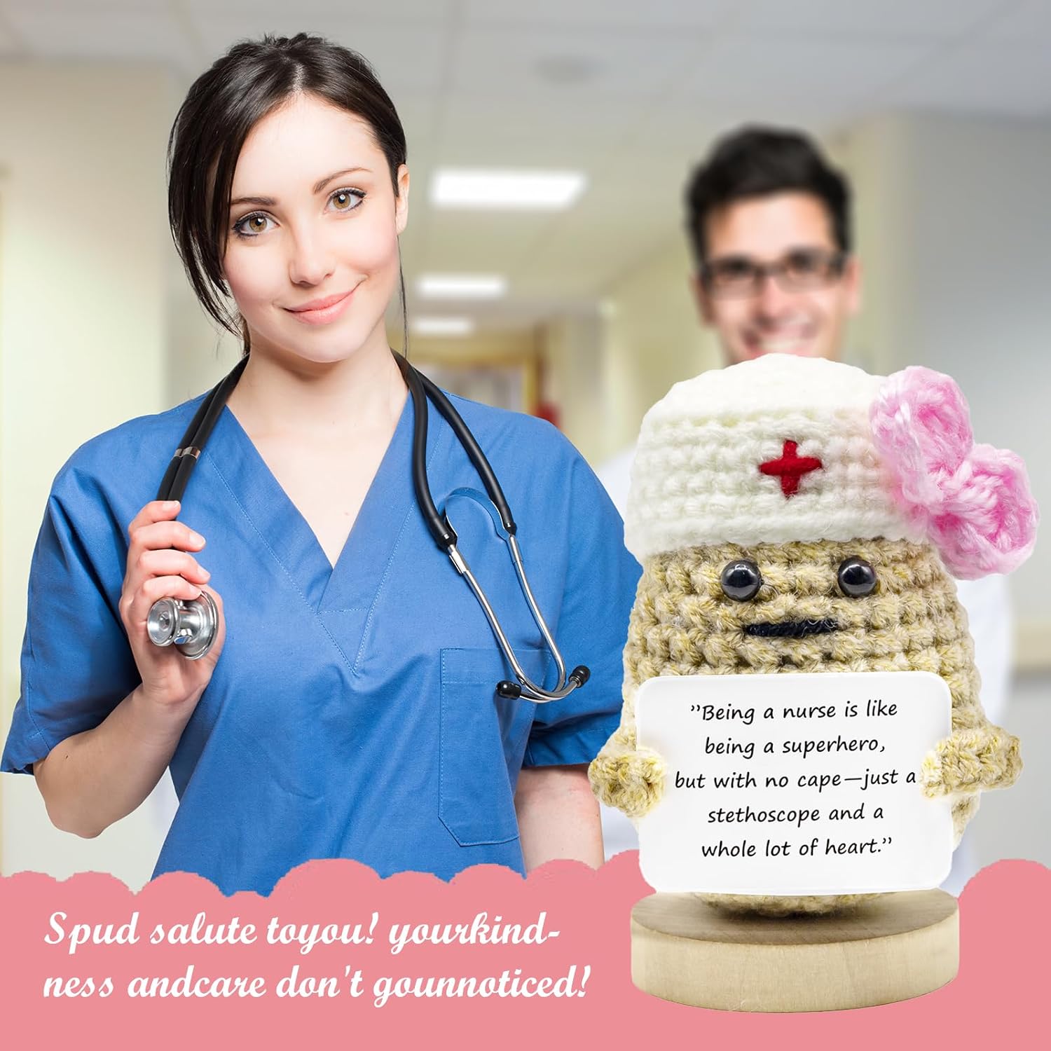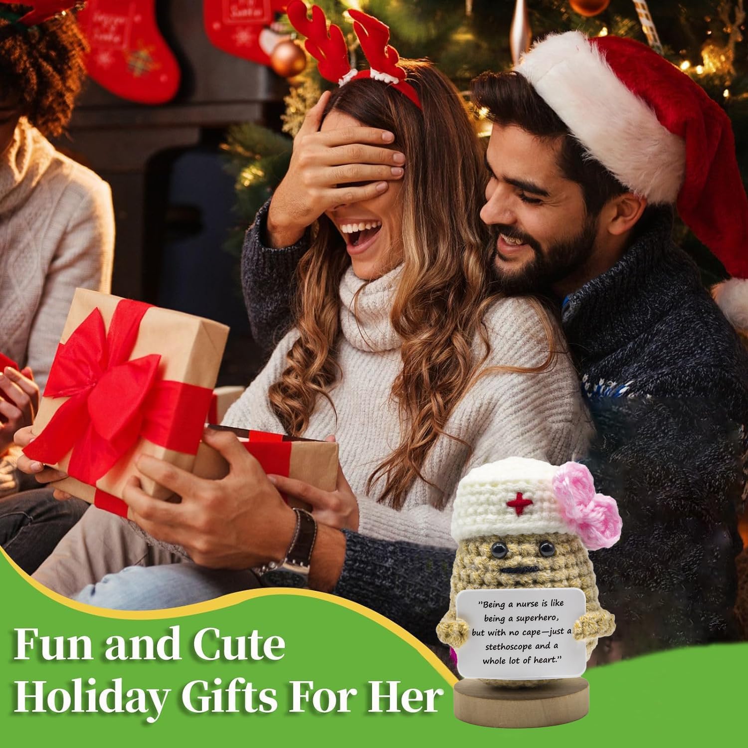Funny Mini Positive Potato, Cute Crochet Doll with Positive Card, Soft Wool Knitting Toy Decoration