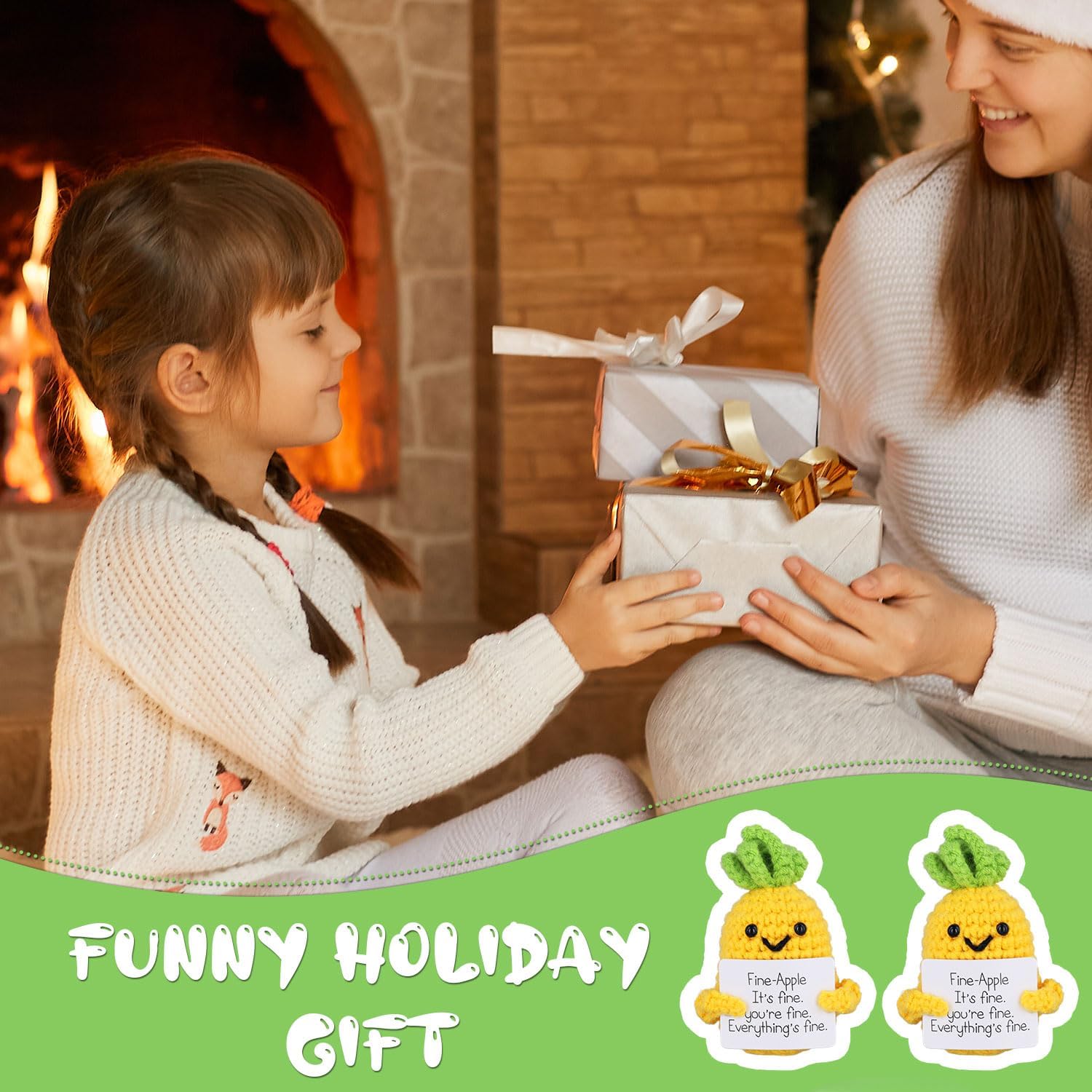 - Package Content: You will receive 1 piece of knitted positive pineapple doll and 1 card printed with encouraging words. This card is pasted on the front of the pineapple doll.