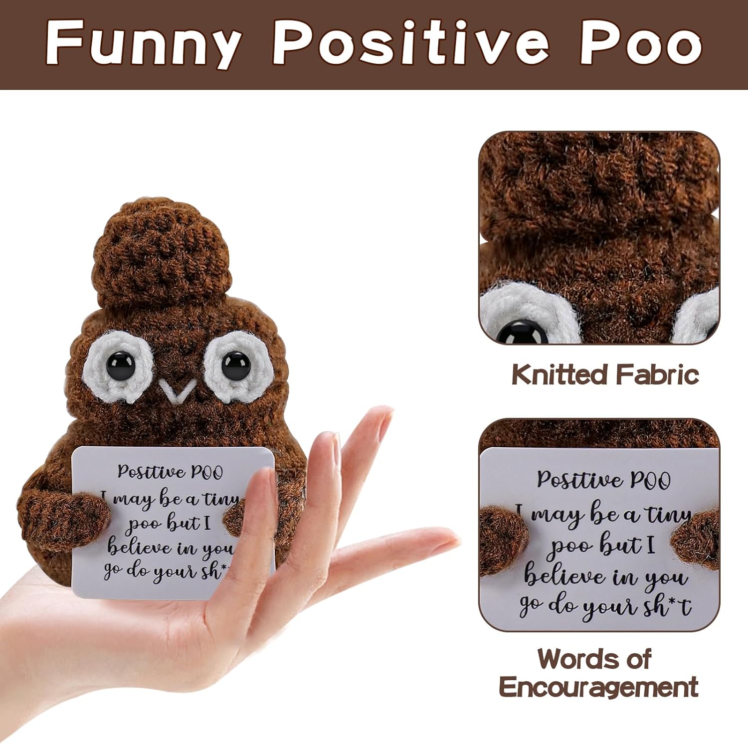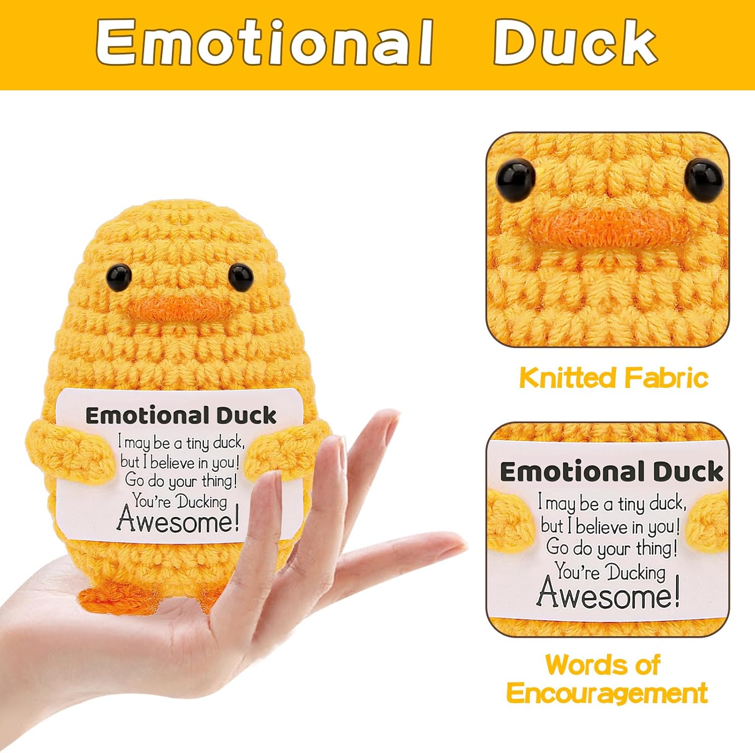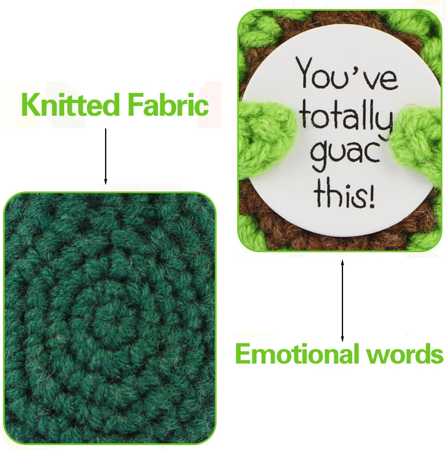 - Handmade Funny Doll - Each cucumber, potato, avocado, duck, shark, mushroom, penguin and more is carefully crocheted by hand, making it a truly unique item. It serves as a doll with an encouraging message card, sure to bring a smile to your loved ones' faces. You will find that Emotional Doll is better than others in terms of color and workmanship!