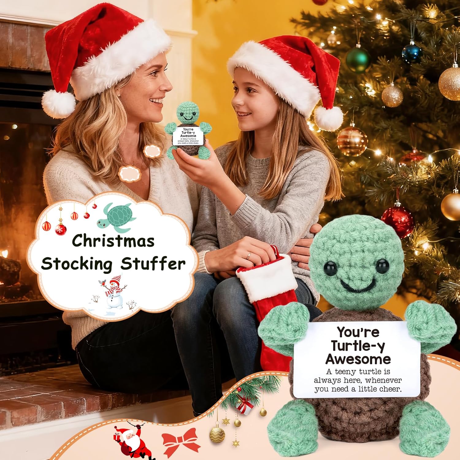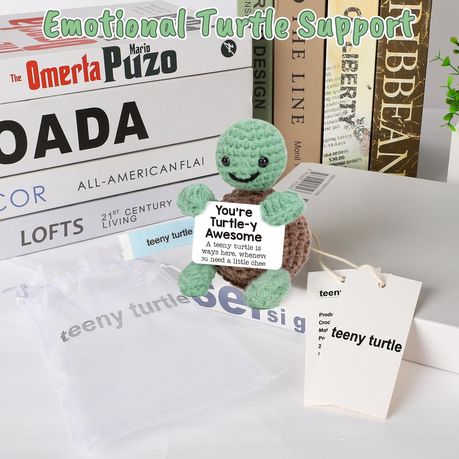 Mini Funny Turtle Birthday Gifts for Christmas, Thanksgiving Bosses Day Retirement Gift, Handmade Emotional Positive Crochet Turtle Decorations