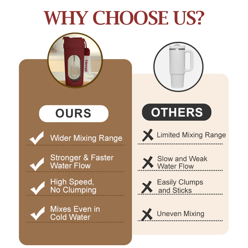 FIGURE-8 STIRRING ROD: Mixes drinks in just a few seconds without clumping. The unique design ensures a wider stirring range and faster water flow for a perfectly smooth consistency every time you use it.