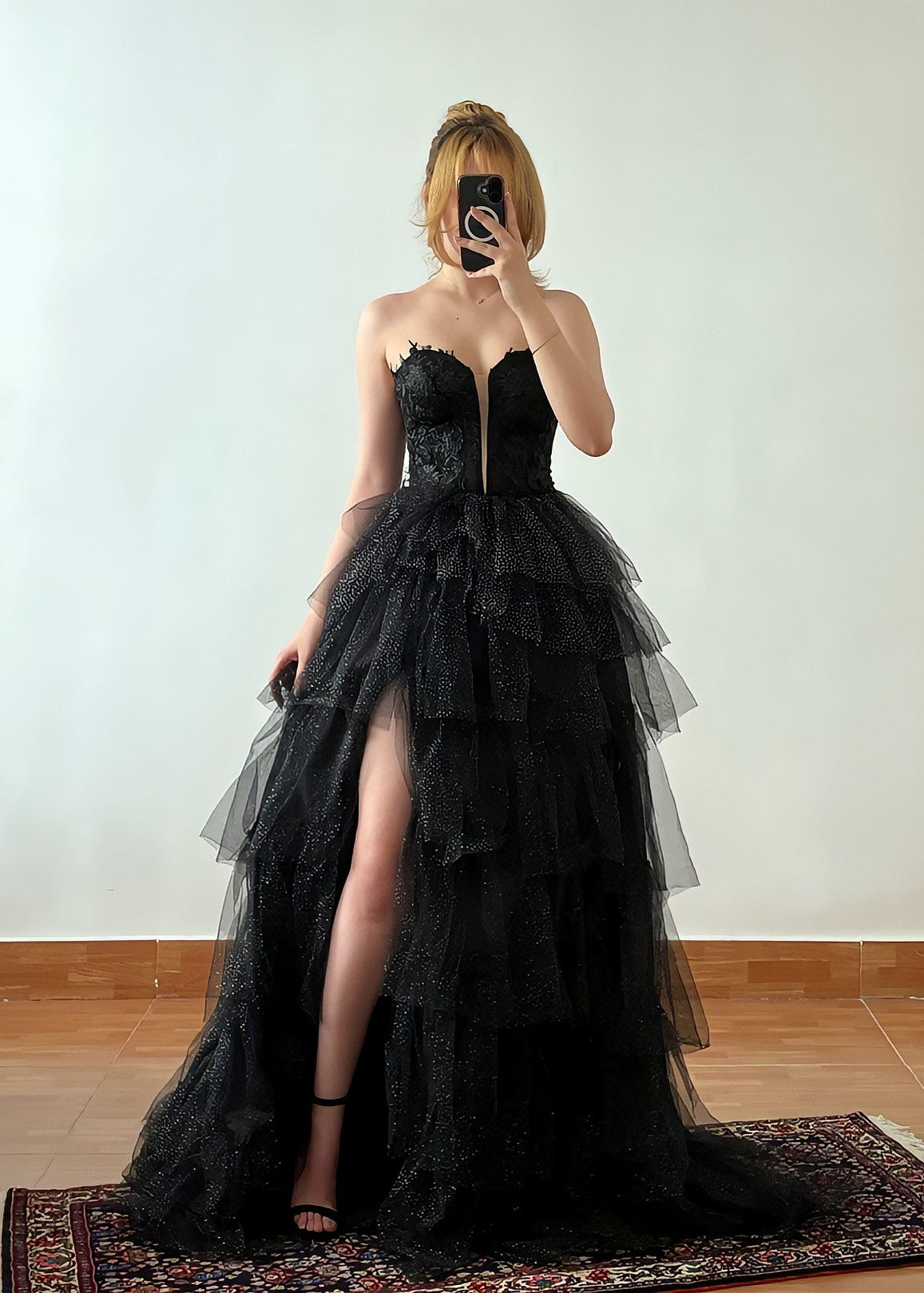 Sexy Sleeveless Cold-Shoulder Lace Tube Top High Slit Dress