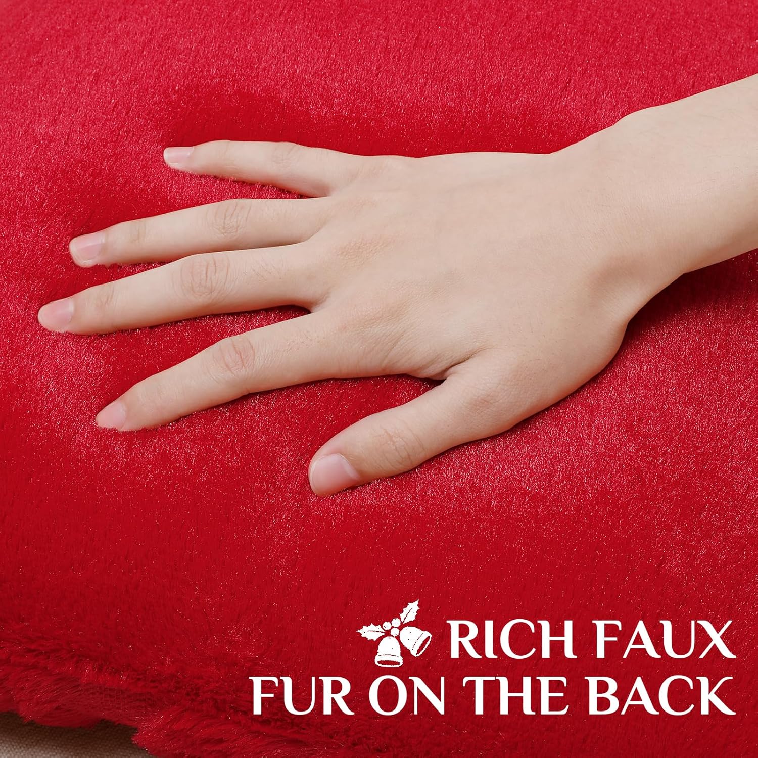 Christmas Throw Pillow Covers Xmas Winter Christmas Tree Faux Fur Cushion Covers, 3D Embroidered Pillow Cases