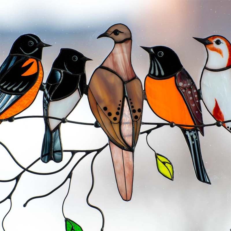 🎁The best Christmas Gift-Birds Stained Glass Window Panel Hangings🐦
