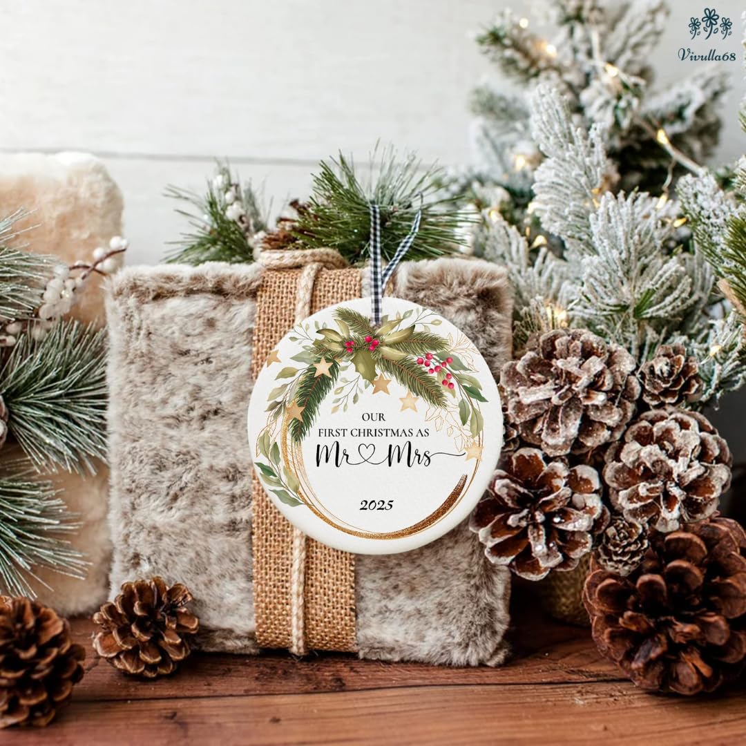 - π² Wedding Ornament 2025: Celebrate your special day with a first Christmas couple ornament, creating lasting memories with a wedding ornament 2025 to honor your first married Christmas. This Christmas gift for married couples is a beautiful keepsake, from Mrs. and Mrs. ornaments to Christmas ornaments for newlyweds. Let this 1st married Christmas ornament bless you both with love and joy as one of your cherished wedding Christmas ornaments.