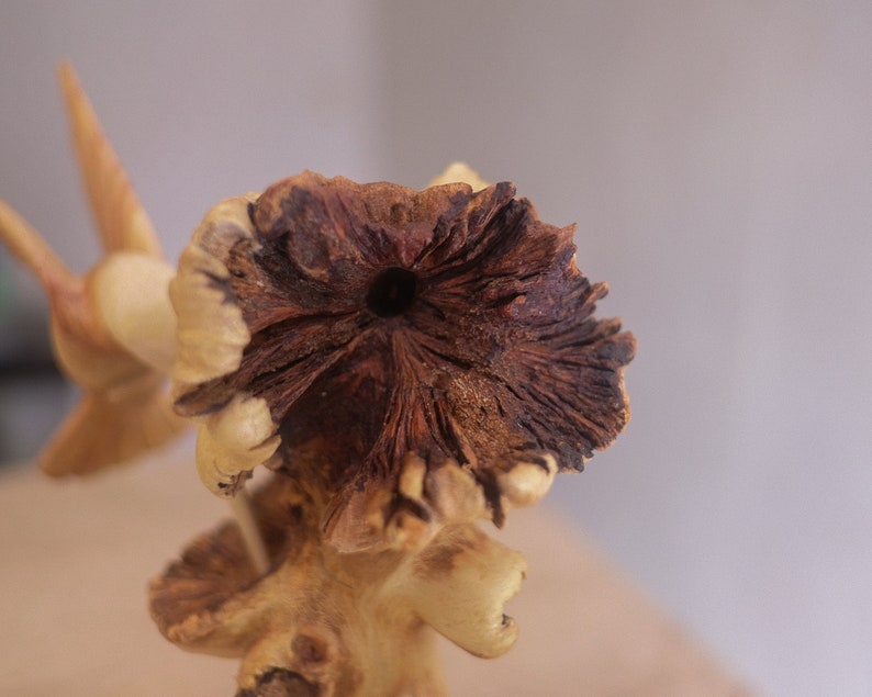 Parasite wood forms naturally as a defense mechanism by a host tree overgrown by a parasite. This defense grows into unique wood called parasite wood. Back then, this wood was only used as firewood, but our skilled artists create beautiful art from it.